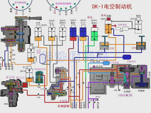 制动系统维修:DK-1电空制动机、YZ-1空气制动机、JZ-7空气制动机等制动系统,包含压缩机、干燥器、总风缸、工作风缸、大小闸、制动阀、中继阀、分配阀、作用阀、变向阀、风表、塞门、风压管路等机构。